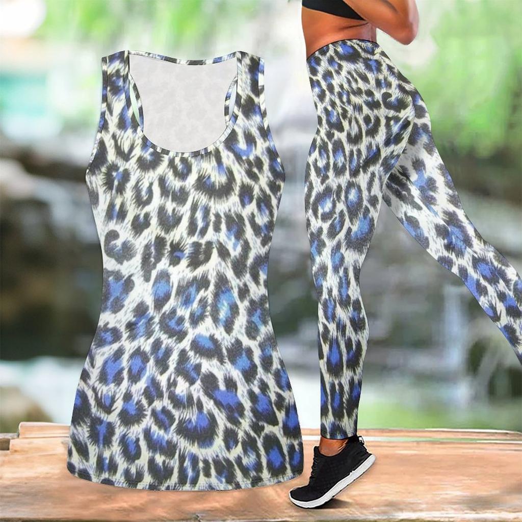 Leopard Print Yoga Outfit for Women Fashion Workout Leggings Fitness Sports Casual Yoga Set Sports Suit