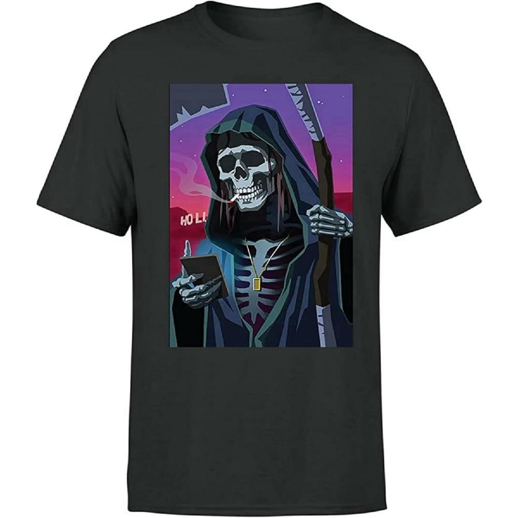 ANOTHER FANCY Reaper Skull Mens Mens T Shirt 100% Cotton Halloween Printed Graphic Tee Top XS