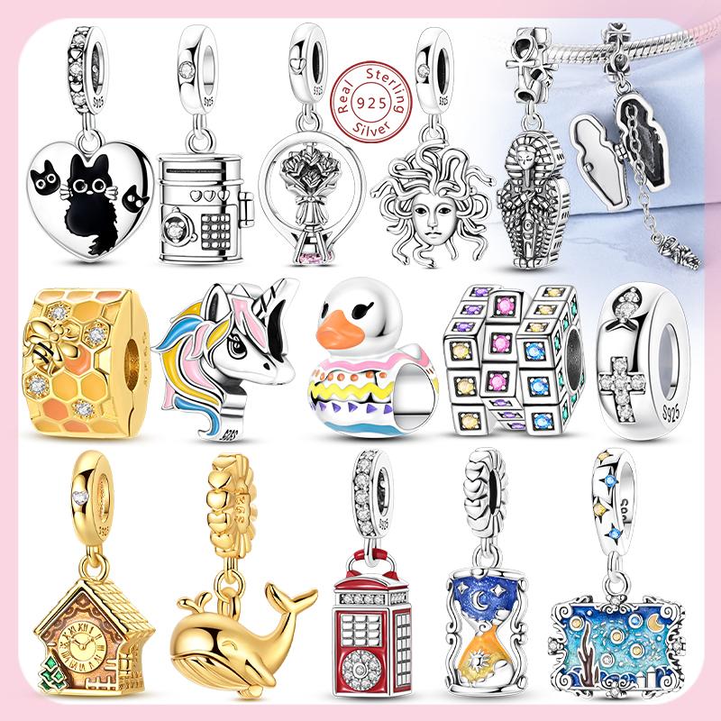 New Charms Beads Copper Crown Starry Sky Whale Cross Unicorn Charms Fit Original Bracelet Bangle Woman Jewelry Gift