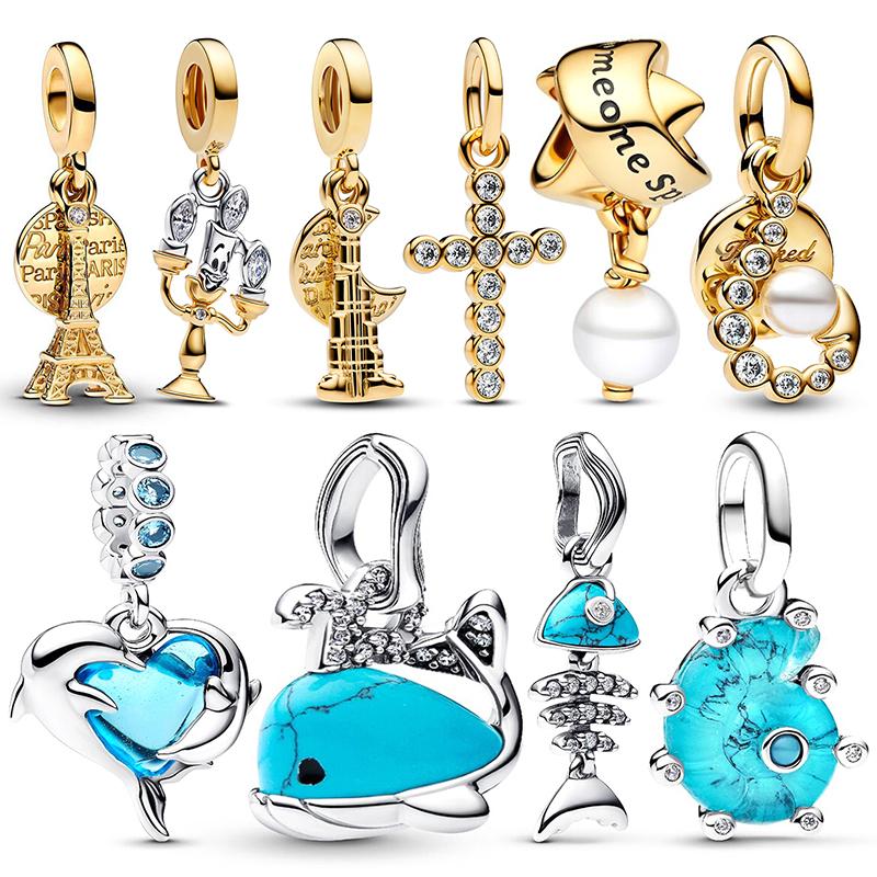 Charm Originale Rose Gold And Blue Zircon Pendant Bead Fits Bracelet Necklace For Charms Copper Woman Luxury Diy Jewelry