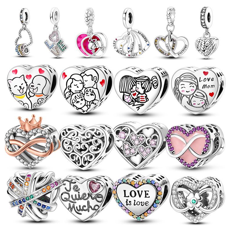 Heart Shape Pendant Inlaid Zircon Love Charms Beads Fit Original Charms Bracelet Copper Friendship Sister Family Gift
