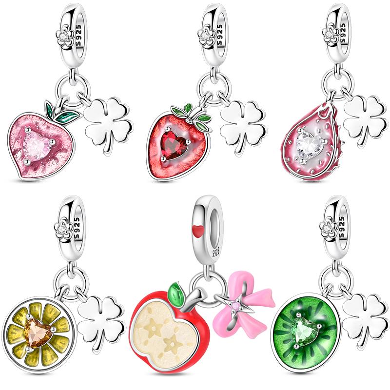 Original Copper Fruit Series Charm Beads Delicious Peach Strawberry Kiwi Lemon Pendant For Bracelet Diy Jewelry
