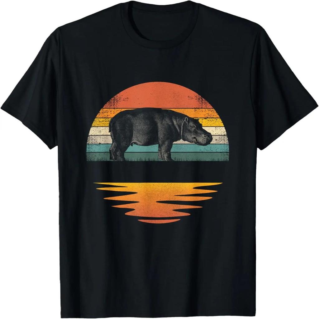 Hippo Retro Sunset Hippo Lover Men Women Kids T-Shirt