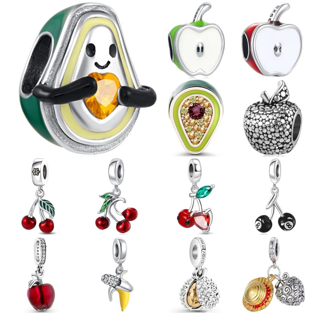 Fashion Copper Sweet Fruit Cherry Avocado Beading Pendant Fit Original Charms Bracelet Women Jewelry Gift