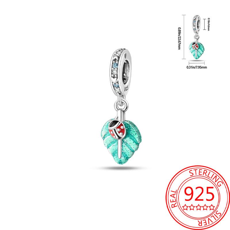 Original Copper Charms Luxury Green Leaf Pendant Ladybug Beads Fit Bracelet Diy Women Making Delicate Gift