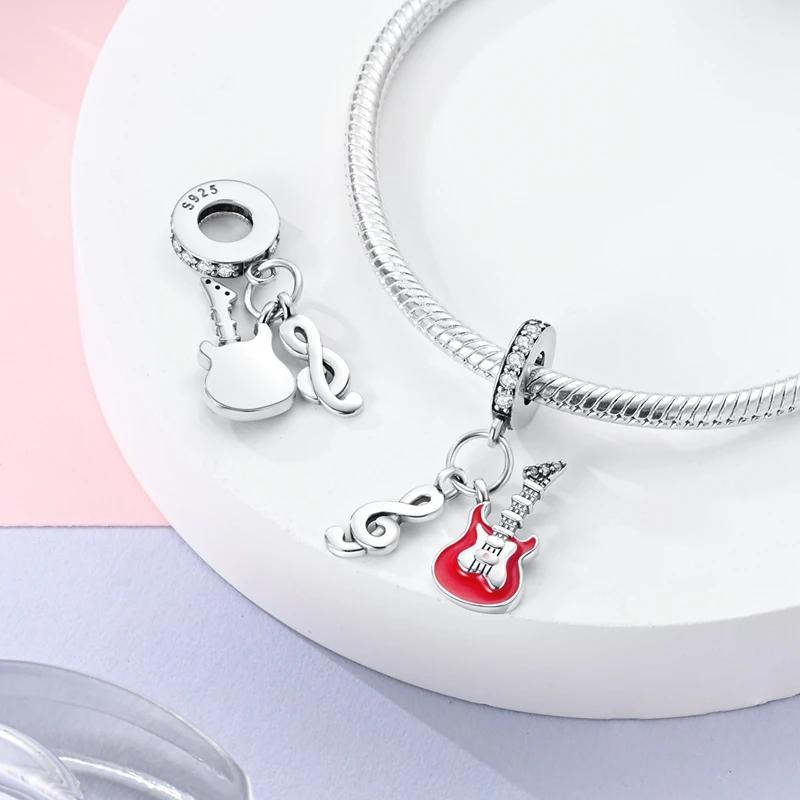 Red Guitar Note Rock Pendants Plata R Original Beads Fit Originalcharms Bracelet Beads Jewelry Gifts For Women
