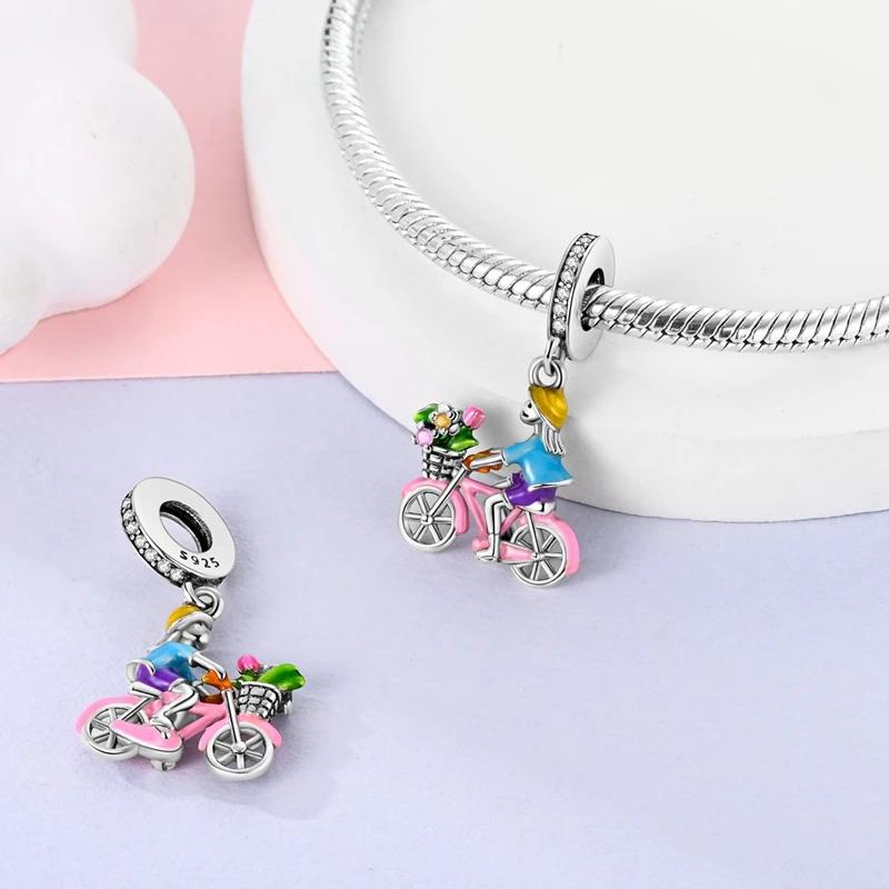 Bicycle Girl Flower Pendantscopper Plated Original Beads Fit Originalcharms Bracelet Beads Jewelry Gifts For Women