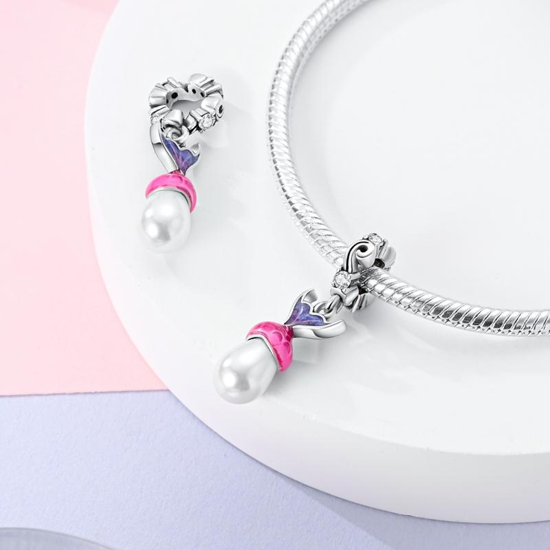Charms Plata Luminous Pinkish-Purple Lucky Mermaid Beads Fit Originalbracelets Charms For Women Jewelry Diy Making Gifts