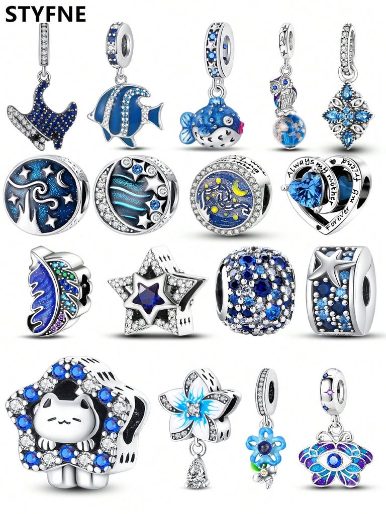 Blue Ocean Devil Fish Moon Stars Beads Charm Copper Plated Fit Charms Copperoriginal Bracelet For Jewelry Making Diy Charm