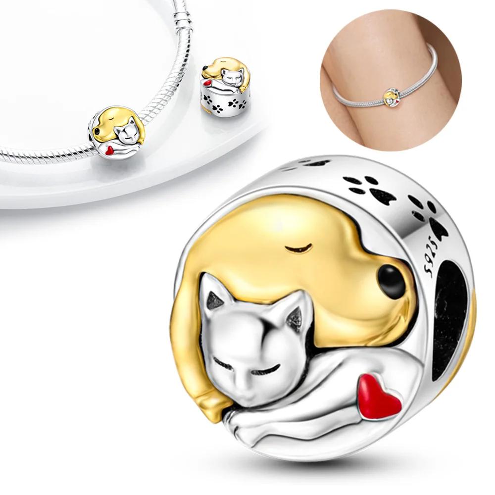 Original Charms Copper Plated Cute Pet Dog And Cat Animal Pendantss Fit Bracelets For Women Jewelry Making Gifts