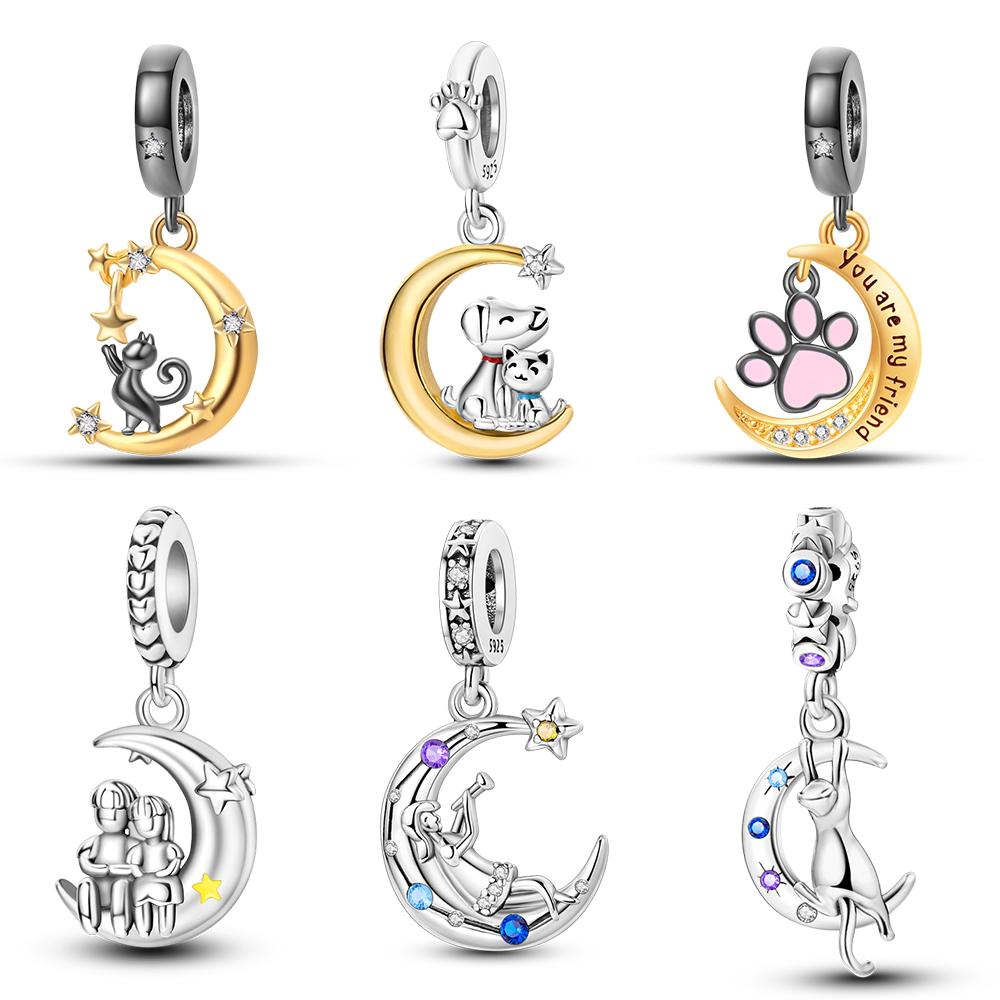 Copper Colour Star & Moon Couple Charms Fit Charms Copper Colour Original Bracelet For Jewelry Making