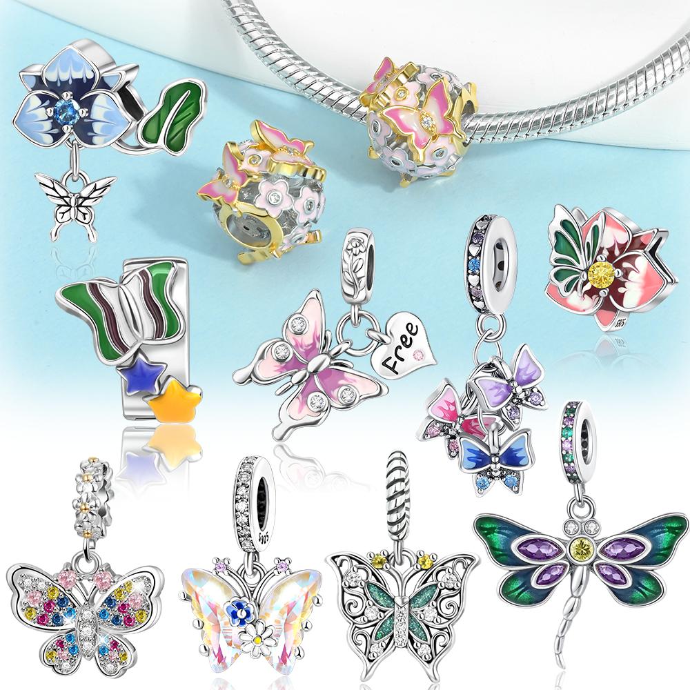 Charms Plata Butterfly Dragonfly Flower Copper Plated For Charms Copper Plated Original Bracelet For Jewelry Making