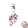 100% Copper Pink Gem Dolphin Charms Beads Horseshoe Cat Ballet Pendant Fit Original Bracelet Diy For Women Jewelry