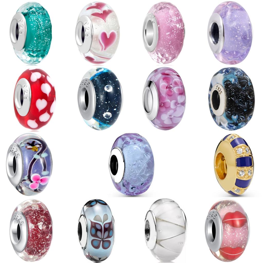 Glass Beads Series Copper Blue Starry Sky Fortunate Charming Red Lips Charm Fits Bracelet Exquisite Gifts