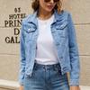 Kadın Denim Ceketler Moda Kadın Rahat Uzun Kollu Yaka Katı Düğme Aşağı Göğüs Cep Ince Jean Ceket Güz Kış Ceket