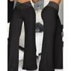 Women's High Waist Wide Leg Pants Textured Fabric Crisscross Waist Casual Trousers