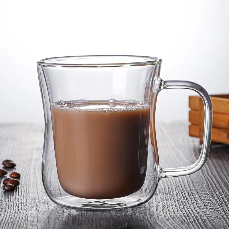 Transparent Borosilicate Double-Walled Glasses with A Handle, Suitable for Coffee, Tea, Cappuccino, Latte Macchiato Mugs