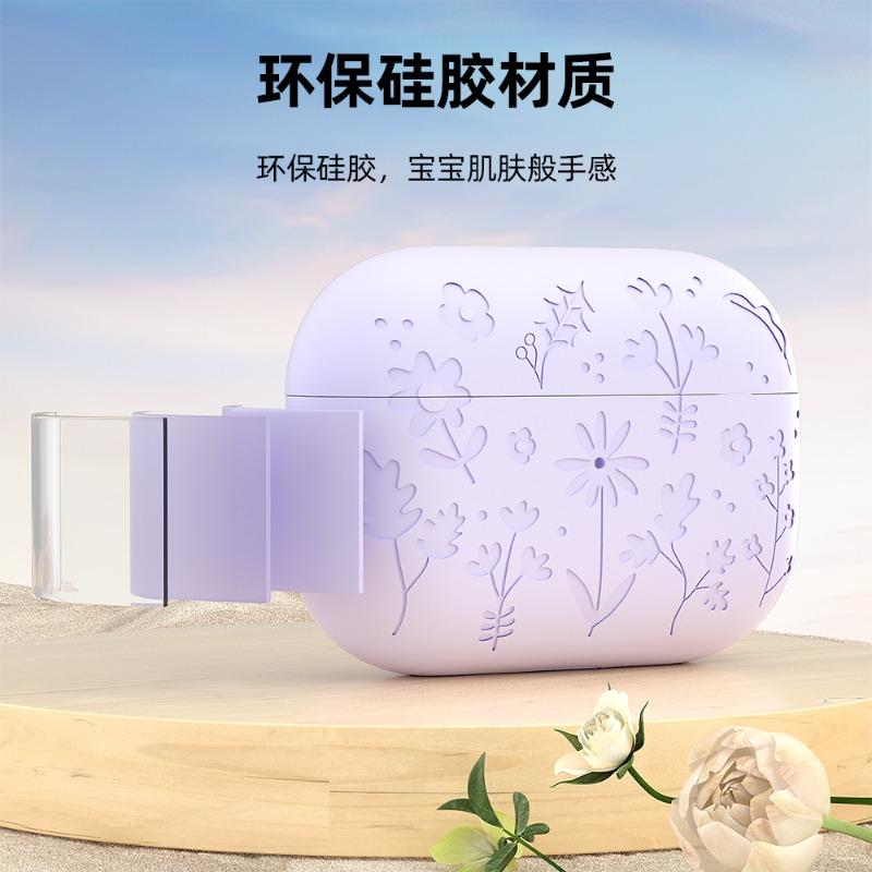Case For Apple AirPods Pro 2 Flower Engraved Protective Case Soft Silicone Full Cover Anti-scratch Shockproof Case For AirPods 4