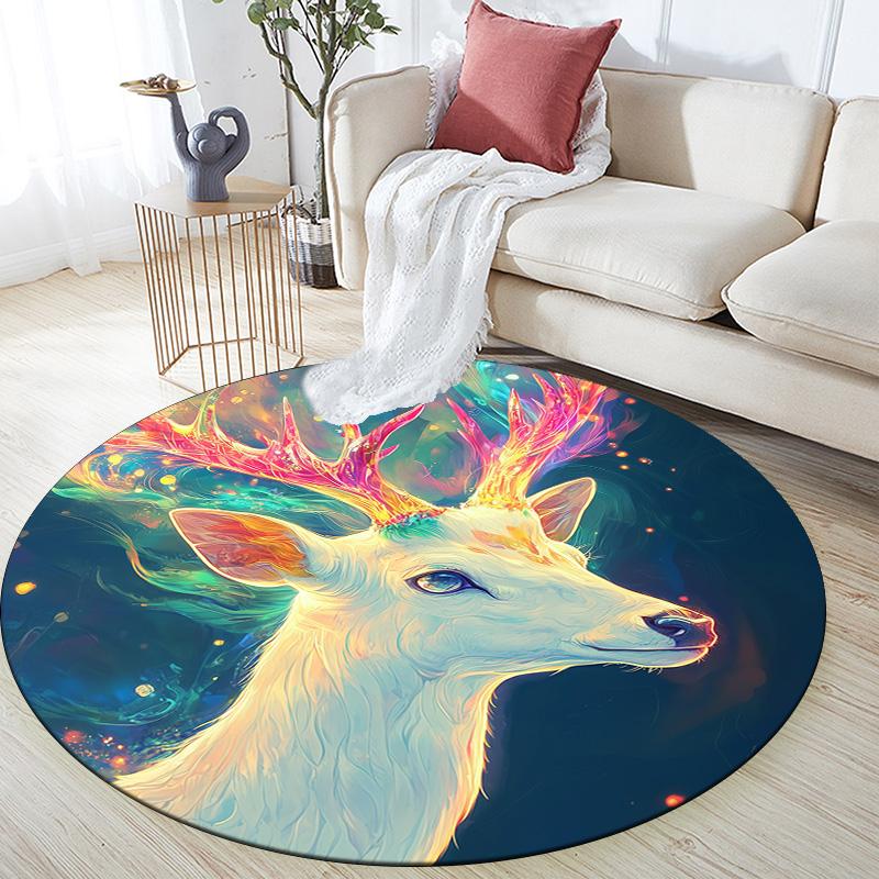 Colorful Deer,Round Area Rug,Carpet Rug for Living Room Bedroom Sofa Playroom Decor,Non-slip Floor Mat