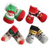 New 4Pcs/set Christmas Deer Snowman Pet Knitted Socks Winter Warm Indoor Wear Slip On Paw Protector Small Dogs Cat Socks Shoes