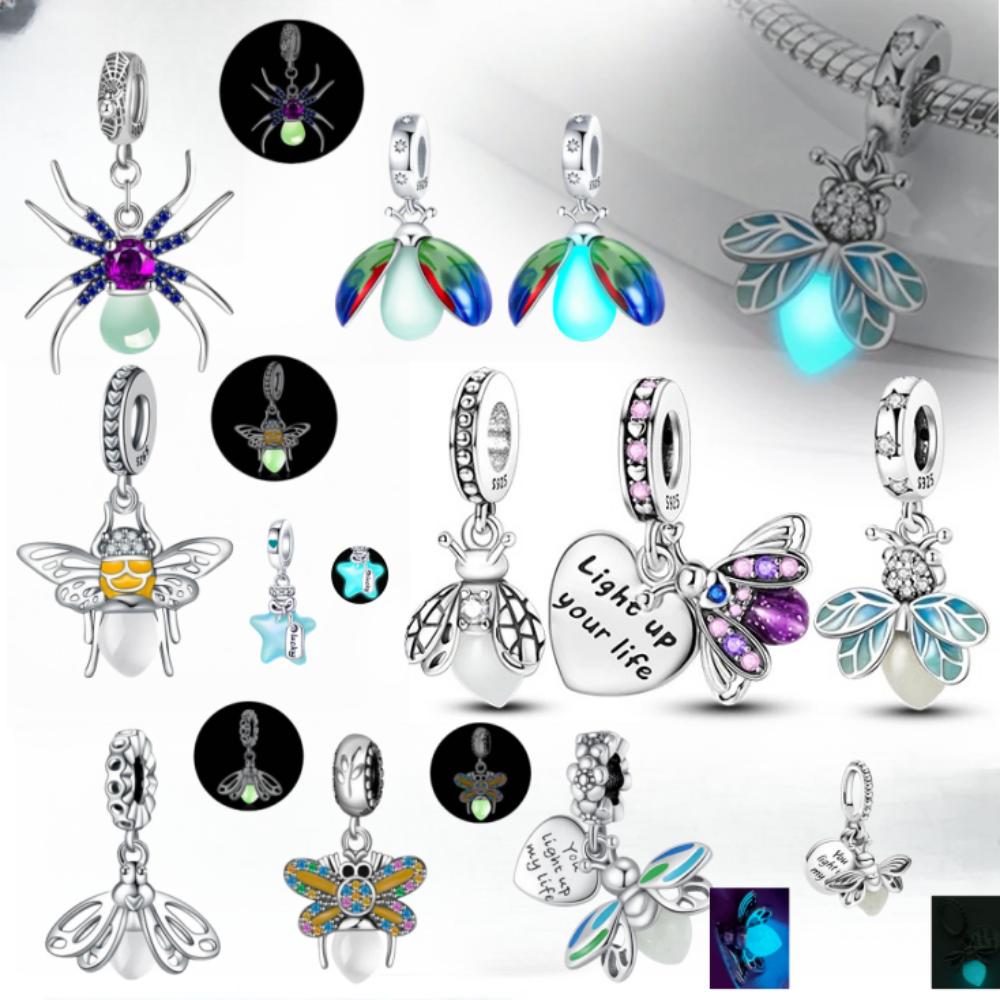 Copper Exquisite Luminous Firefly Light Bulb Star Spider Pendant Fit European Original Bracelet Necklace Diy Jewelry