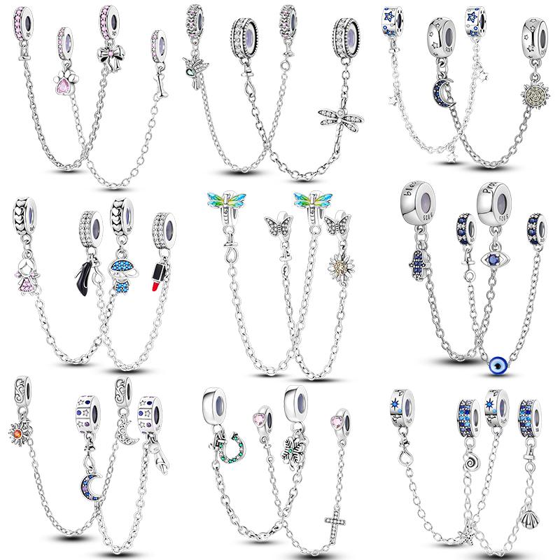 Originalcopper Safety Chain Fixed Clasp Clip Charms Stars Moon Four Leaf Clover Butterfly Beads Woman Bracelet Diy Jewelry