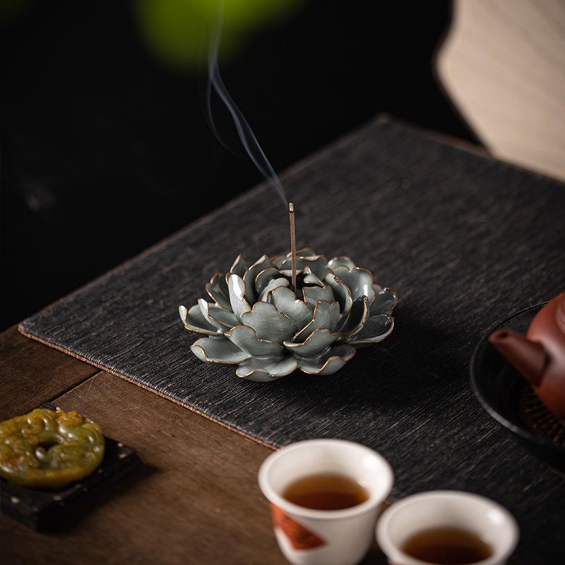 Creative handmade line incense insert peony flower incense burner household indoor ceramic Ge kiln retro line incense base incense ornament