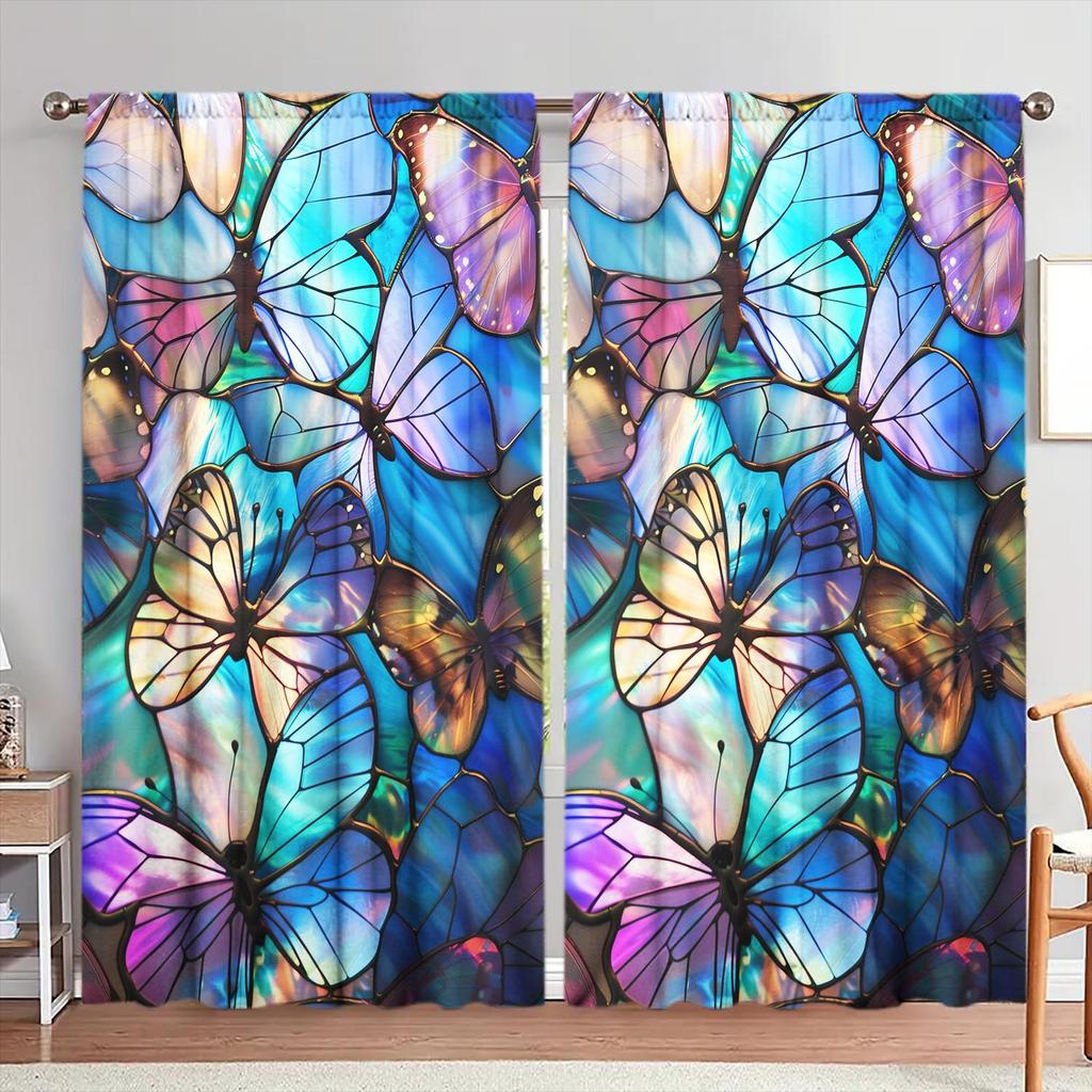 2-Panels Stained Glass Butterfly Semi Blackout Curtain Half Blackout Suitable for Artistic Home Decorative Curtains
