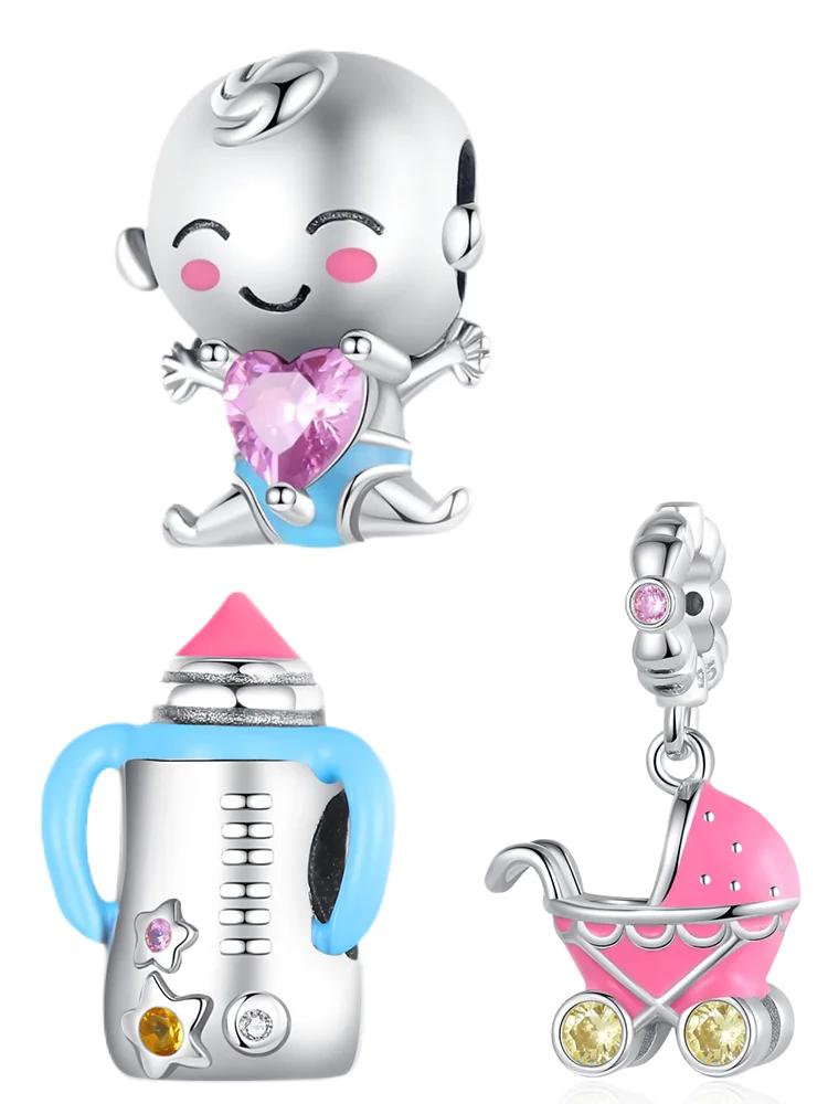 Charms Plata Pacifier Baby Bottle Birth Commemoration Gift Beads Love Heart Birthstone Beads Birthday Gift