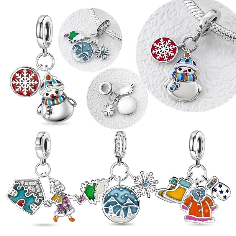 New Christmas Charmscopper Snowman Snowflake Charm Beads Fit Original Bracelets Diy Fine Jewelry Giftfor Women