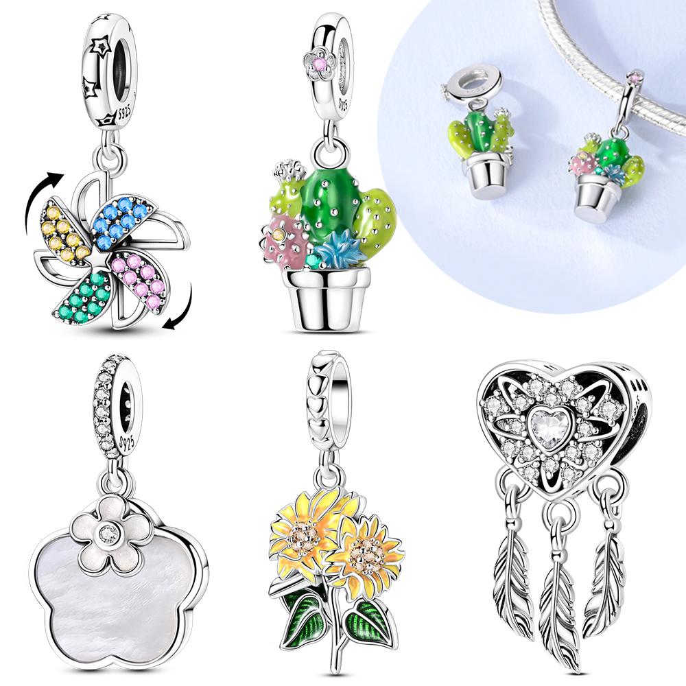 Charms Plata Copper Colors Cactus Succulent Pendant Fit Original Bracelet Diy Fine Jewelry Gift For Women