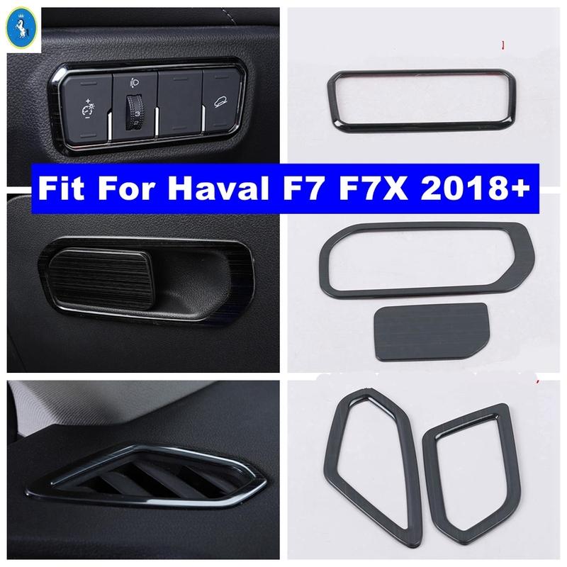 Black Brushed Car Air AC Outlet / Glove Storage Box / Lights Control Panel Accessories Cover Trim For Haval F7 F7X 2018 -