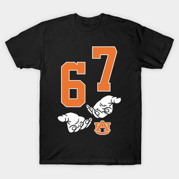 Men Black Print T-shirt Auburn Tigers 67 No-Cut Transfer Paper Print Cotton Tshirt