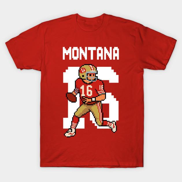 Men Black Print T-shirt Joe Montana 49Ers Retro Pixel Quarterback Throwback Art No-Cut Transfer Paper Print Cotton Tshirt