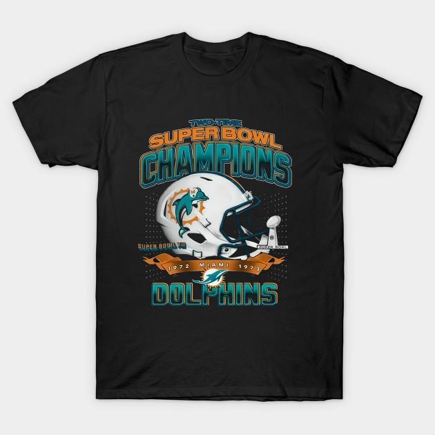 Men Black Print T-shirt Miami Two Time Super Bowl Champions No-Cut Transfer Paper Print Cotton Tshirt