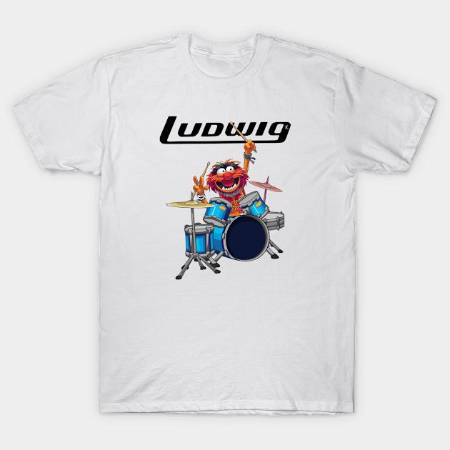 Men Black Print T-shirt Vintage Ludwig Drums No-Cut Transfer Paper Print Cotton Tshirt