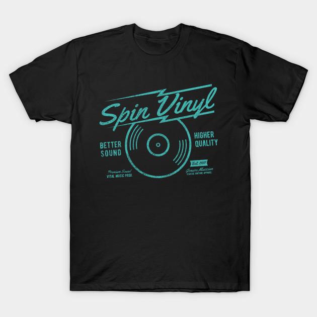 Men Black Print T-shirt Spin Vinyl Retro Record No-Cut Transfer Paper Print Cotton Tshirt