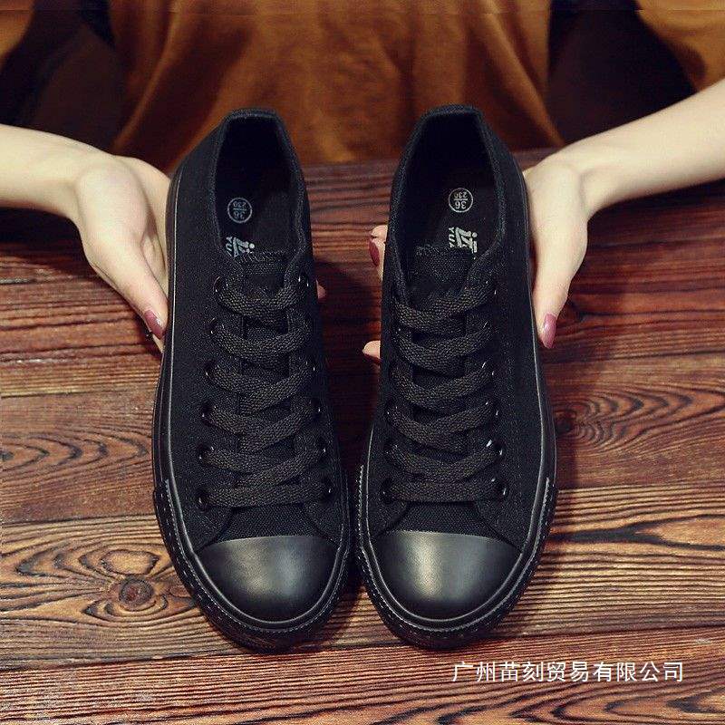 Small black shoes spring all black tide flat baseplate shoes sneakers canvas shoes