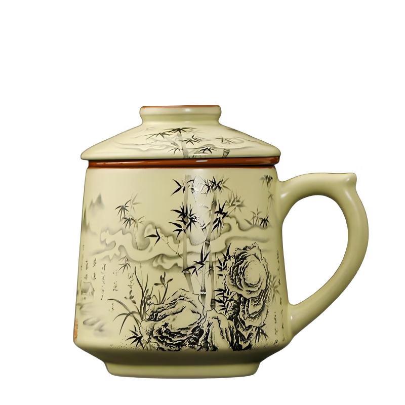 Shangqi Ceramic Ru Kiln Lidded Tea Infuser Office Mug