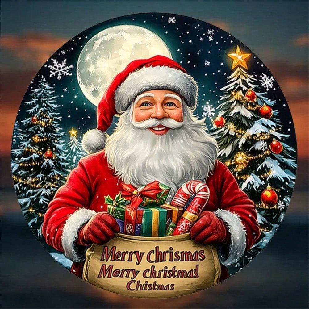 Vintage Tin Metal Wall Art Merry Christmas Santa Sign for Home Bar Cafe Decor