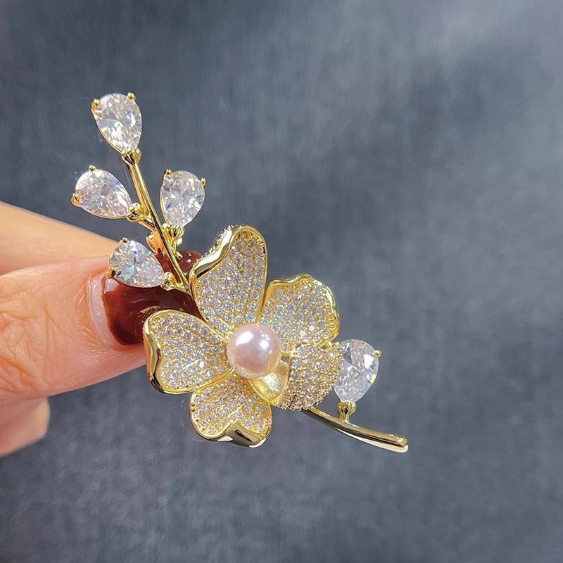 Full Diamond Plum Blossom Branch Brooch High-end Female Elegant Pearl Brooch Design Sense Pin Suit Accessories