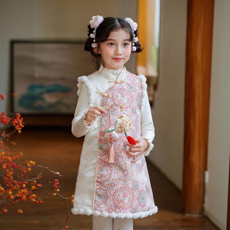 Girls' Chinese Style Sweater Vest & Cheongsam Skirt Set