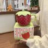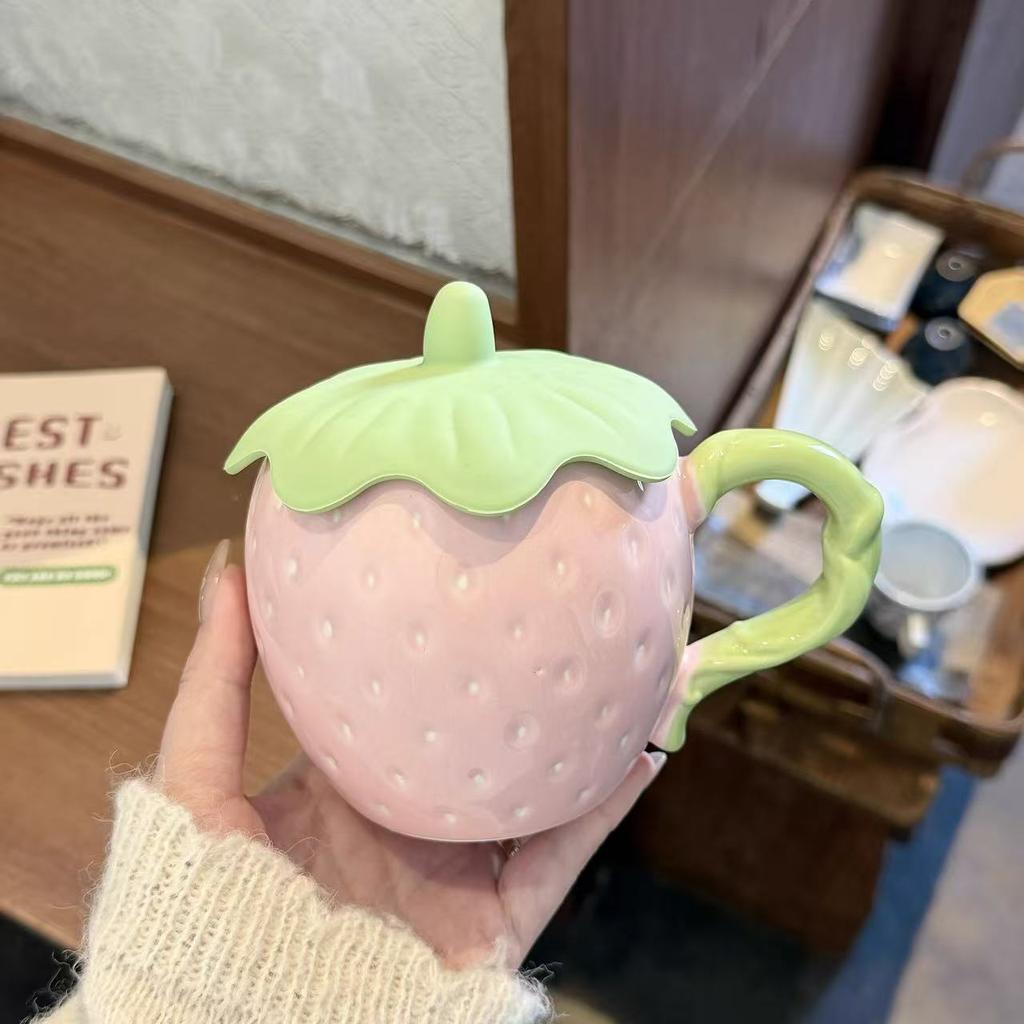 Strawberry mug with lid, high-value creative cup, ceramic water cup, niche birthday gift for girls