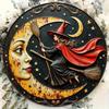 Witch on Moon Broom Ride Retro Metal Wall Art Plaque Decor