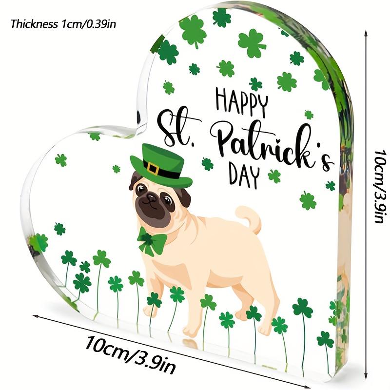Happy St. Patrick'S Day Acrylic Heart Plaque with Leprechaun Dog & Clover Design - Perfect for Home, Office, or Desk Decor | Ideal Gift for Dog Lovers