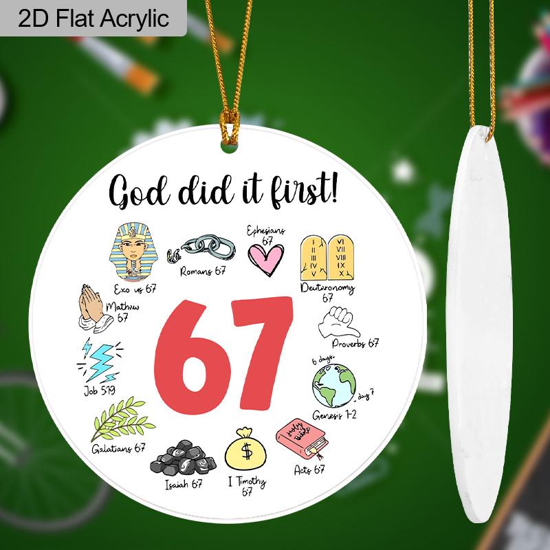 2D Flat "God Did It First 67" Round Acrylic Decorative Sign, Suitable for Wall Decoration, Porch, Room, Villa, Accents Home, Hallway, or Workplace - R