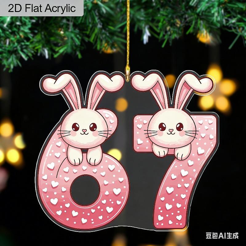 2D Flat Acrylic Bunny 67 Decoration Sign, Valentine's Day Gift, Suitable for wall decoration, porch, room, villa, accents Home, Hallway, or Workplace