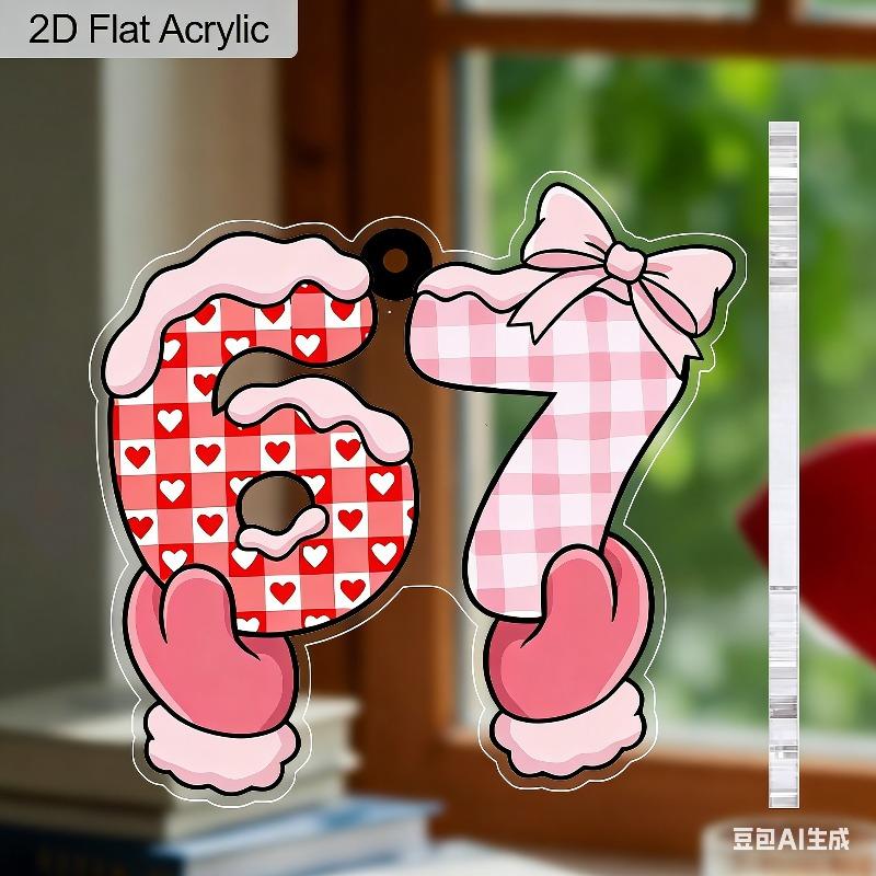 2D Flat 67 Number Acrylic Couple Symbol Decoration Sign, Valentine's Day Gift, Suitable for Wall Decoration, Porch, Room, Villa, Accents Home, Hallway