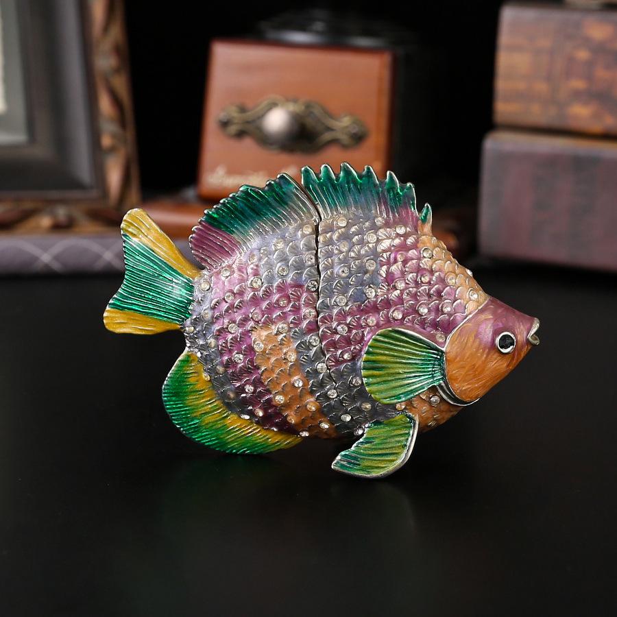 Retro clownfish ornament jewelry box with lid enamel collection jewelry storage box diamond-encrusted metal handicrafts