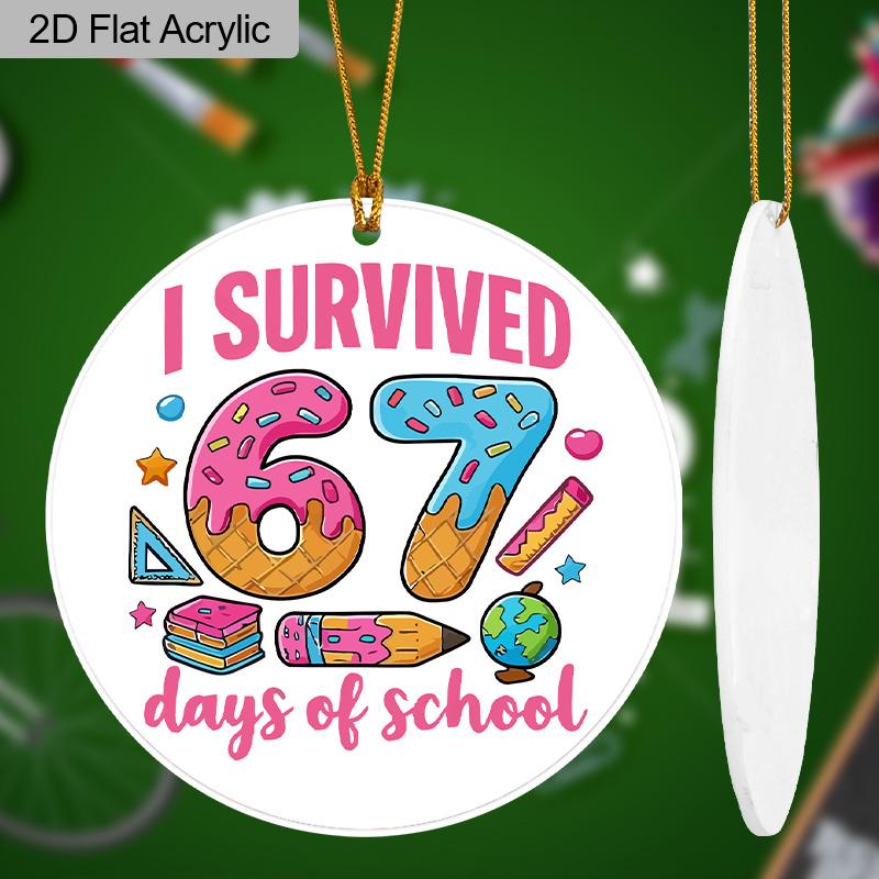 2D Flat "I Survived 67 Days of School" 67 Acrylic Decoration Sign, Suitable for Wall Decoration, Porch, Room, Villa, Accents Home, Hallway, or Workpla